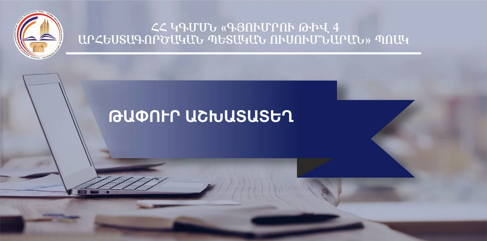 ՀՀ ԿԳՄՍՆ «Գյումրու թիվ 4 արհեստագործական պետական ուսումնարան» ՊՈԱԿ-ը հայտարարում է մրցույթ հետևյալ թափուր տեղի համար․