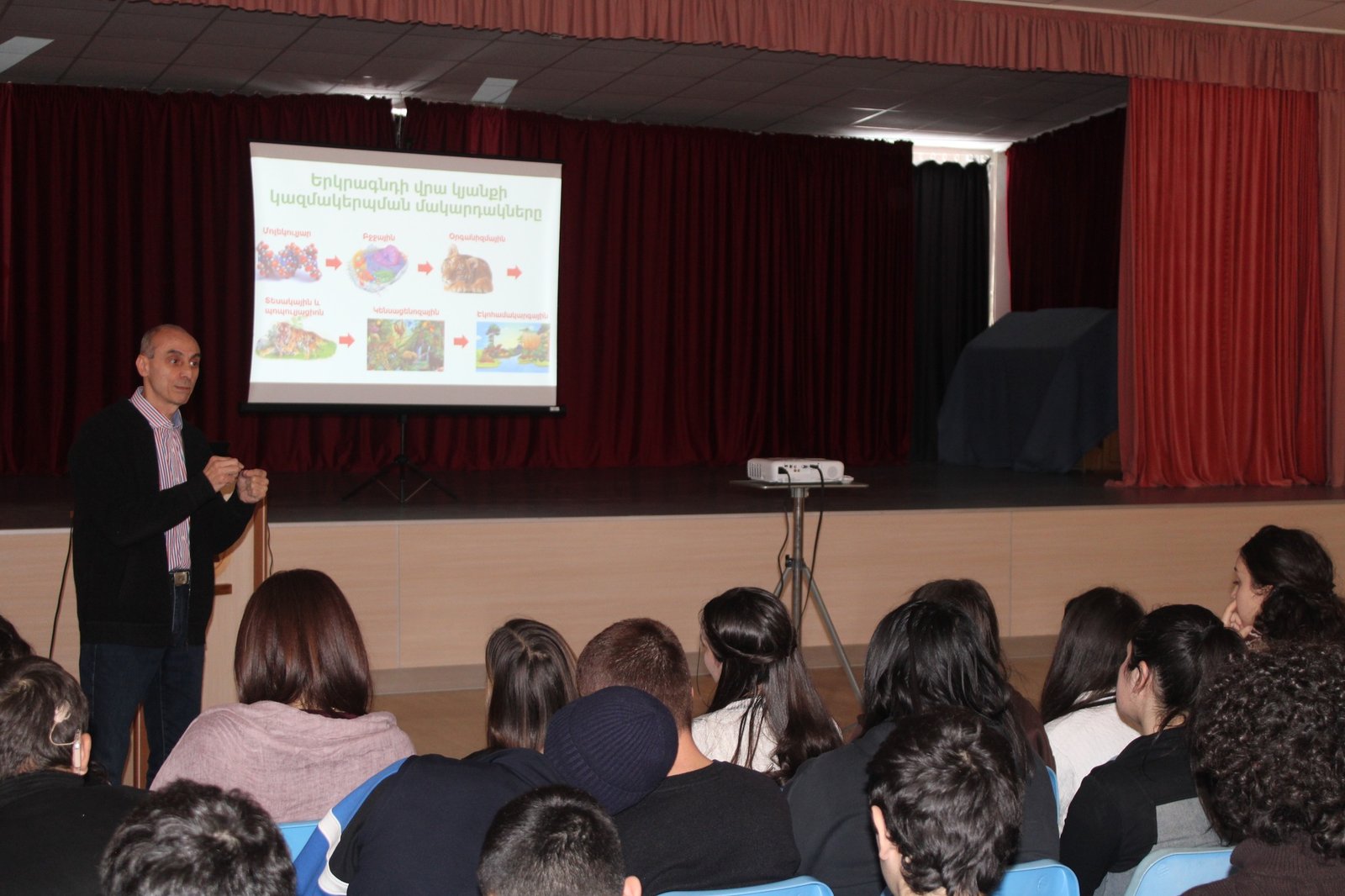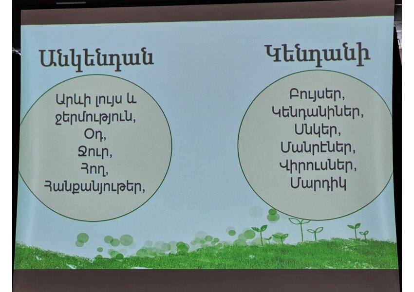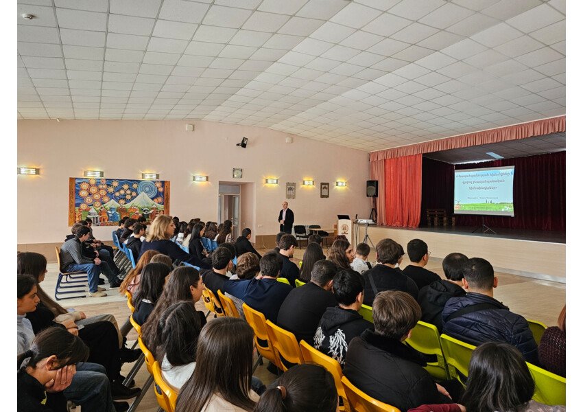Այսօր ուսումնարանը հյուրընկալել էր «Բիոսոֆիա» առողջապահության, բնապահպանության և գյուղատնտեսության զարգացման կենտրոն ՀԿ-ի նախագահ, փորձագետ Գևորգ Պետրոսյանին, ով վարեց «Բնապահպանության հիմունքներ և գլոբալ բնապահպանական հիմնախնդիրներ» թեմայով սեմինար պարապմունք։