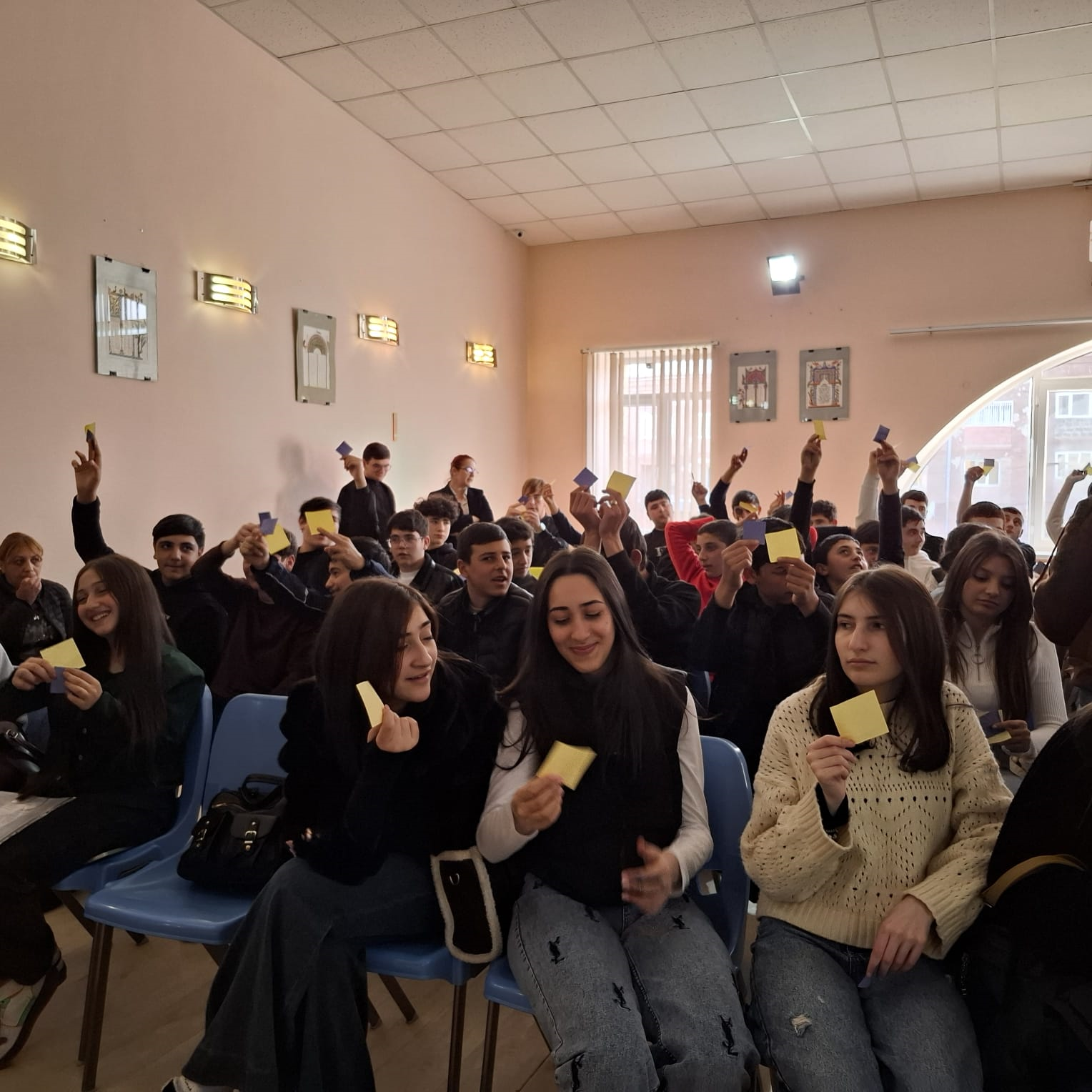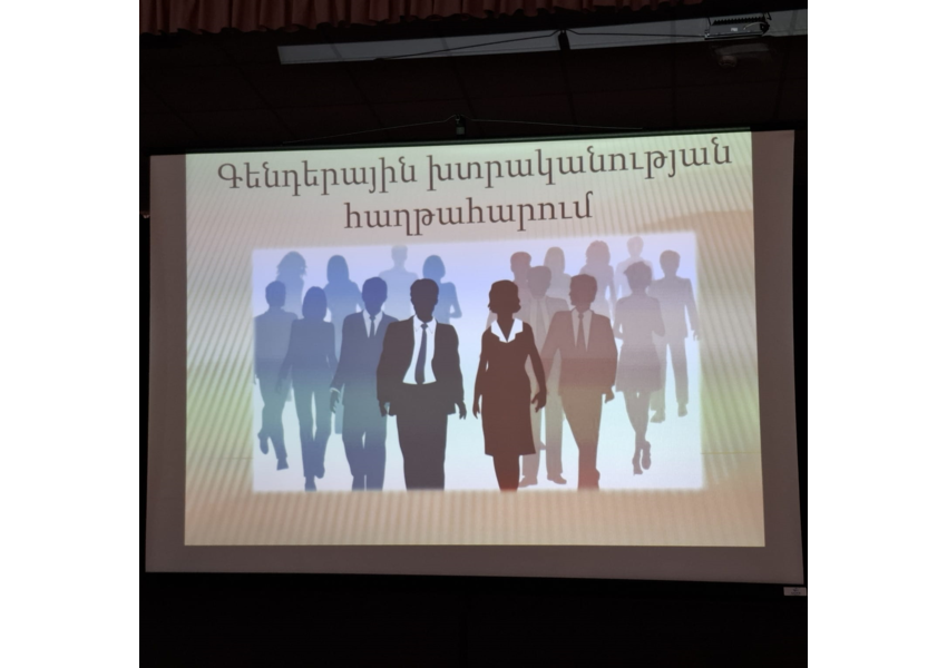 Ուսանողները հետաքրքրությամբ ծանոթացան ՀՀ Սահմանադրությամբ սեռի հիմքով գենդերային խտրականության արգելքի փաստին։ Զեկուցողը ներկայացրեց նաև այն օրենսդրական միջոցները, որոնք ուղղված են խտրական օրենքների, ենթաօրենսդրական ակտերի, սովորույթների և պրակտիկաների վերացմանը՝ հատկապես կանանց նկատմամբ։