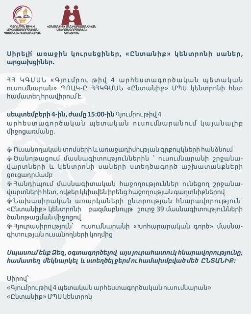 ERASMUS+ ԾՐԱԳՐԻ ՇՐՋԱՆԱԿՆԵՐՈՒՄ RENFORCE ՄԻՋԱԶԳԱՅԻՆ ՆԱԽԱԳԾԻ ՀԱՅԱՍՏԱՆՅԱՆ ԵՎ ՄԻՋԱԶԳԱՅԻՆ ԳՈՐԾԸՆԿԵՐՆԵՐԸ ՀՅՈՒՐԸՆԿԱԼՎԵՑԻՆ ԳՅՈՒՄՐՈՒ ԹԻՎ 4 ԱՐՀԵՍՏԱԳՈՐԾԱԿԱՆ ՊԵՏԱԿԱՆ ՈՒՍՈՒՄՆԱՐԱՆՈՒՄ
